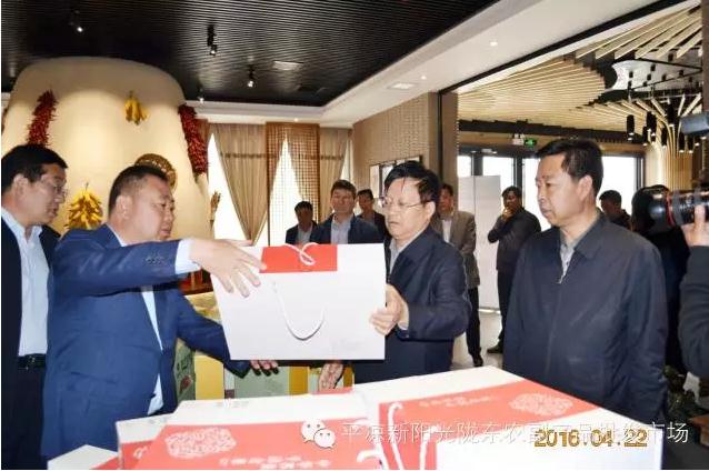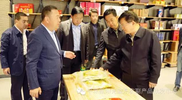 4月22日,平凉市委书记郑亚军,市委副书记、代市长王奋彦、崆峒区委书记陈铎,区长赵小林等领导一行来平凉新阳光陇东农副产品批发交易市场调研.