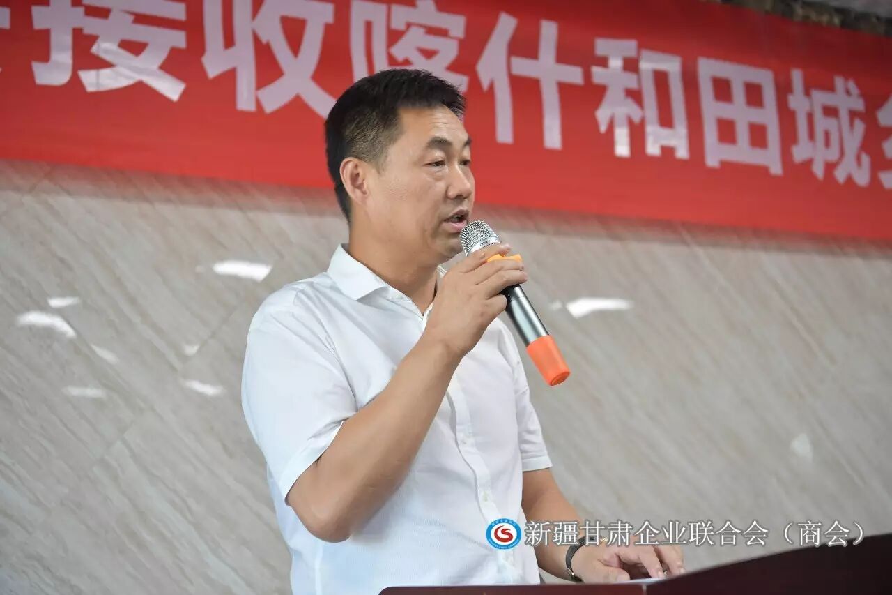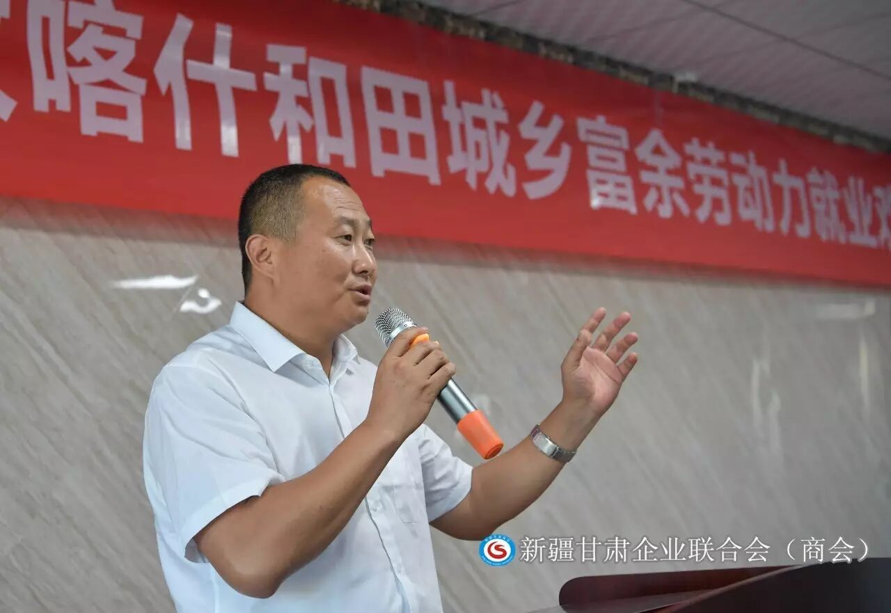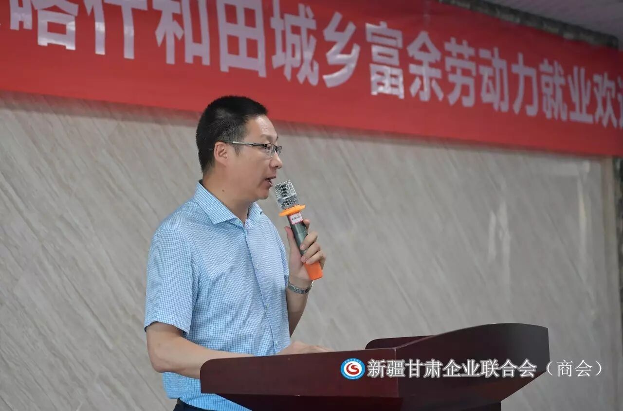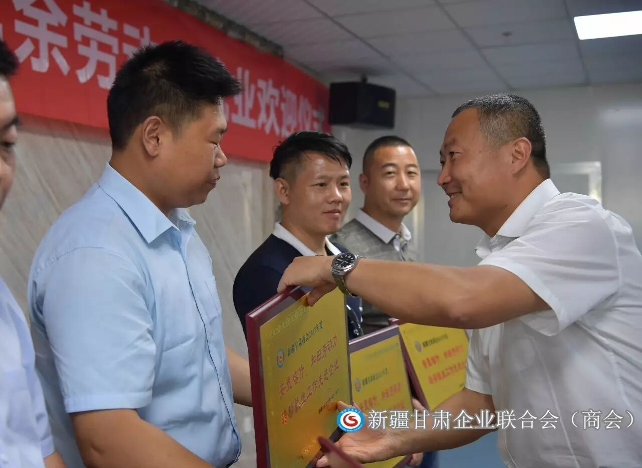 随后,新疆甘肃商会又在百成鲜食供应链有限公司召举行了欢迎仪式,商会执行会长兼秘书长刘成在会上致欢迎辞。他说,我们将不折不扣按照党委政府的要求,在后勤保障、岗位培训等方方面面加强管理服务,切实解决转移就业人员的后顾之忧,让他们在企业感受到家的温暖和亲人般的关怀。他同时勉励转移就业人员,希望安心工作,虚心学习,爱岗敬业,把企业当成自己的家,把同事当成自己的兄弟姐妹,像一家人一样一起工作、学习,为我们团结和谐、富裕繁荣的美好明天共同努力。